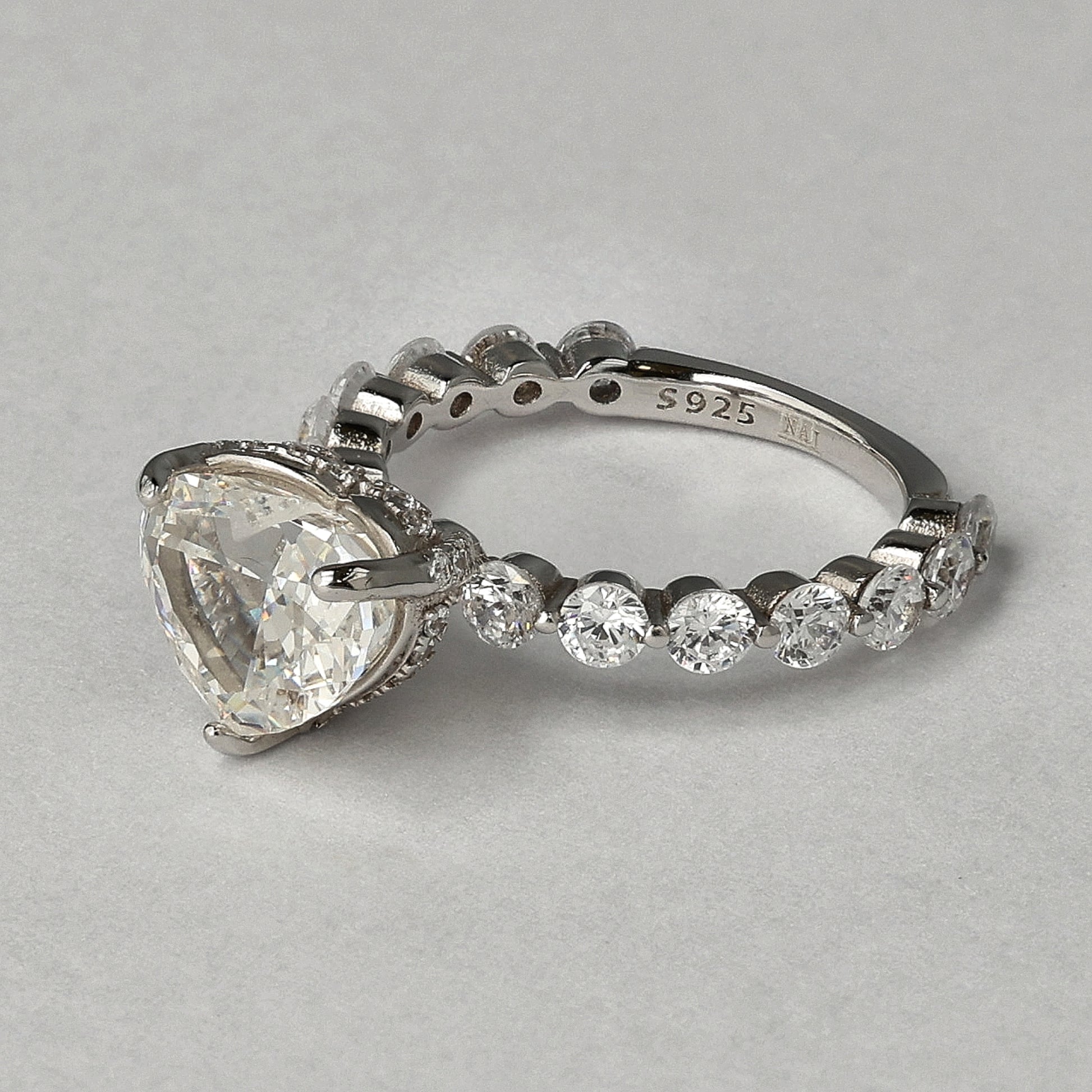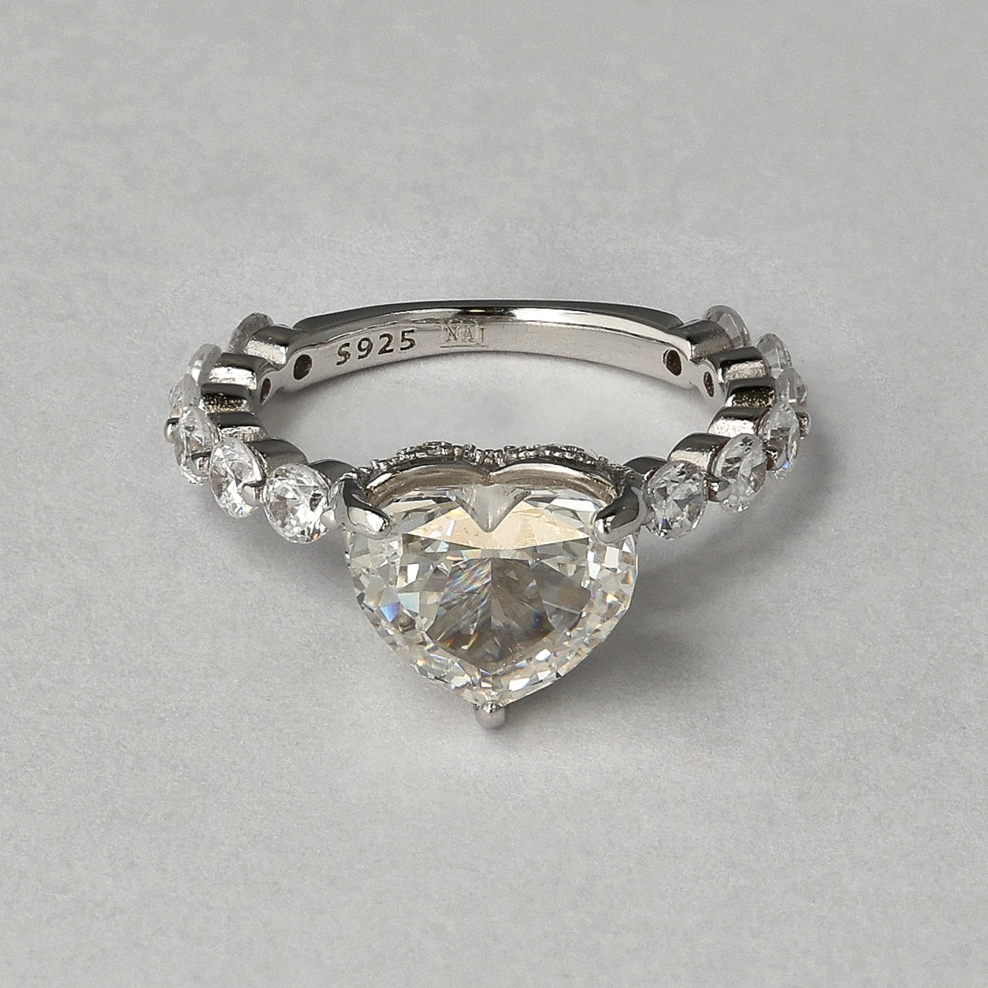 This statement ring features a heart-shaped 8A zircon — bold, luminous, and full of emotion. Set on a 925 silver band adorned with round-cut stones, it captures light with every movement, like love itself — impossible to ignore.
