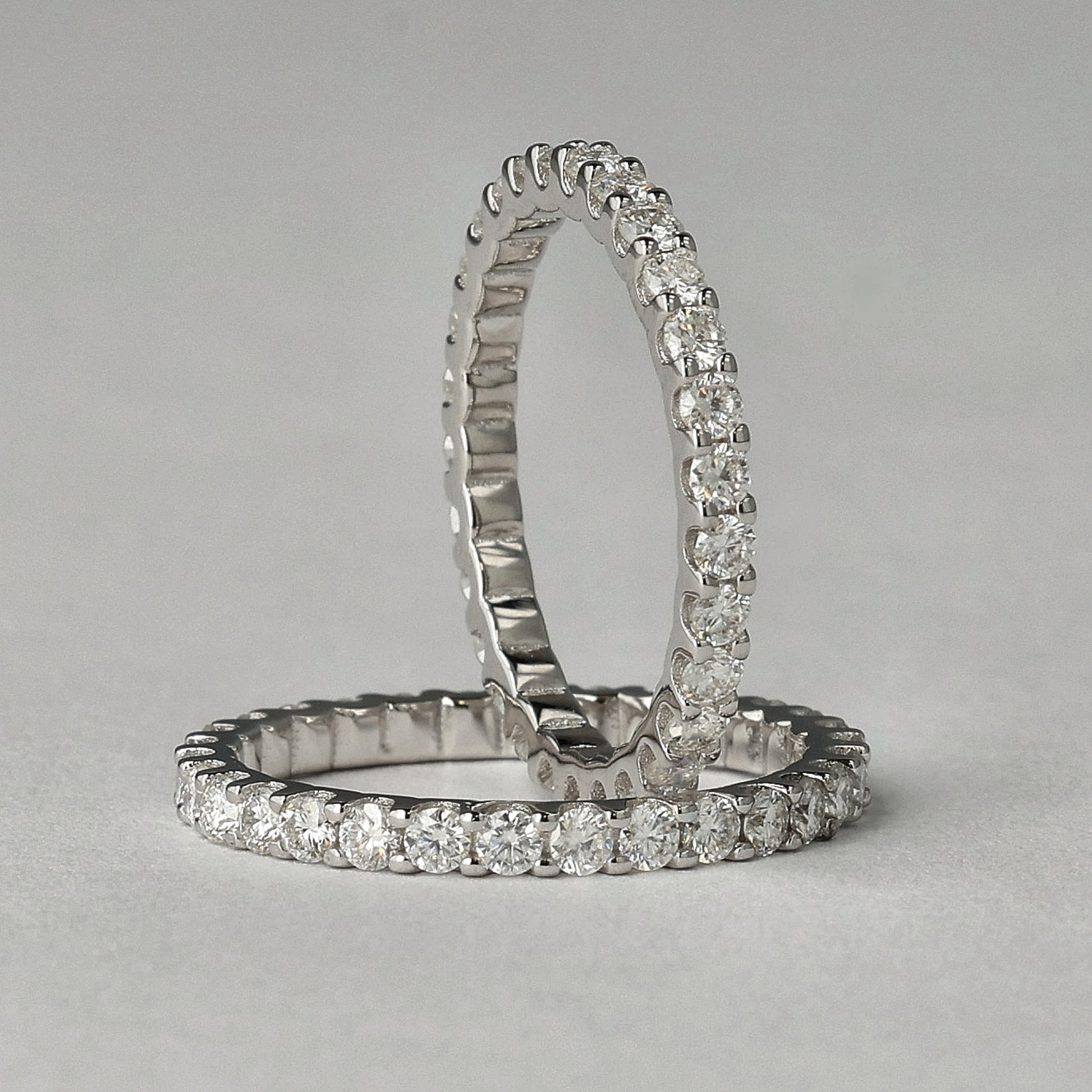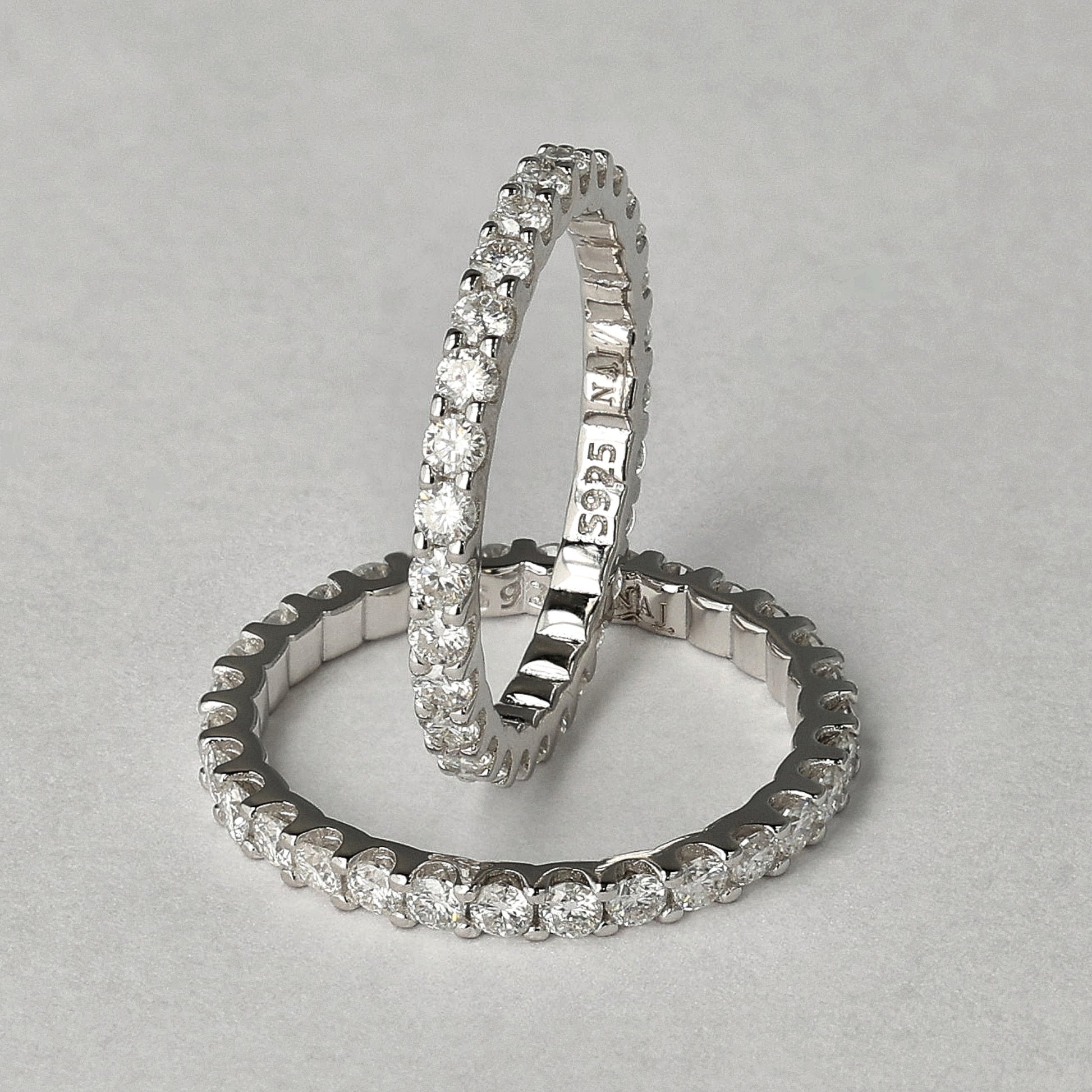 Moissanite is known for its clear brightness and for rating higher on the brilliance index than diamond. Paired with 925 sterling silver, it becomes a durable band that keeps its shine and clarity through daily wear.