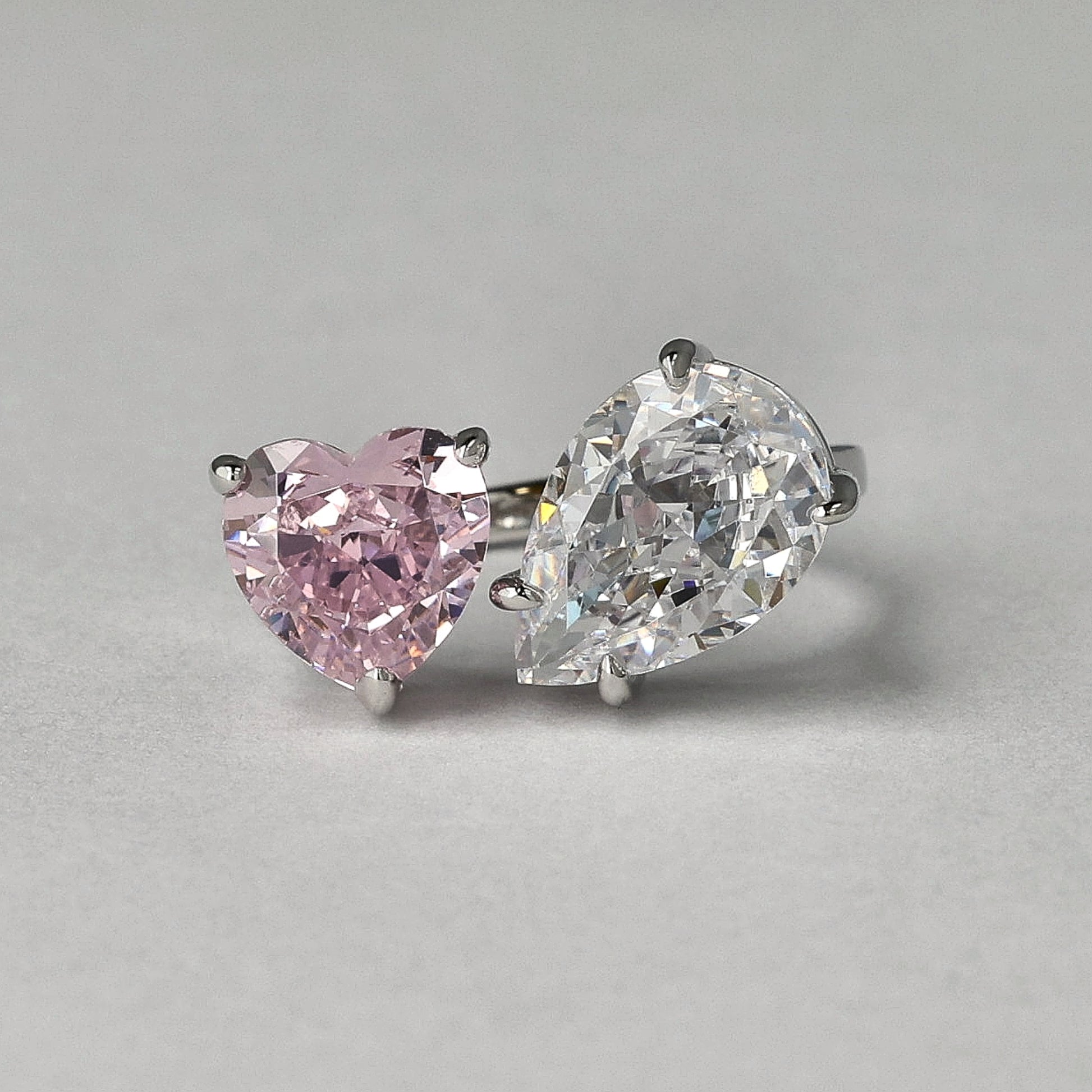 Love meets clarity. The “Heart on Light” ring is crafted from genuine 925 sterling silver and features two dazzling 8A-grade zircon stones: a radiant pink heart and a luminous clear pear-shaped gem. Together, they symbolize emotion and intuition — the heart that feels, and the light that guides. A bold, elegant piece that captures both softness and strength. Together, the matching earrings, bracelet, and pendant — they are the full circle of self-love.