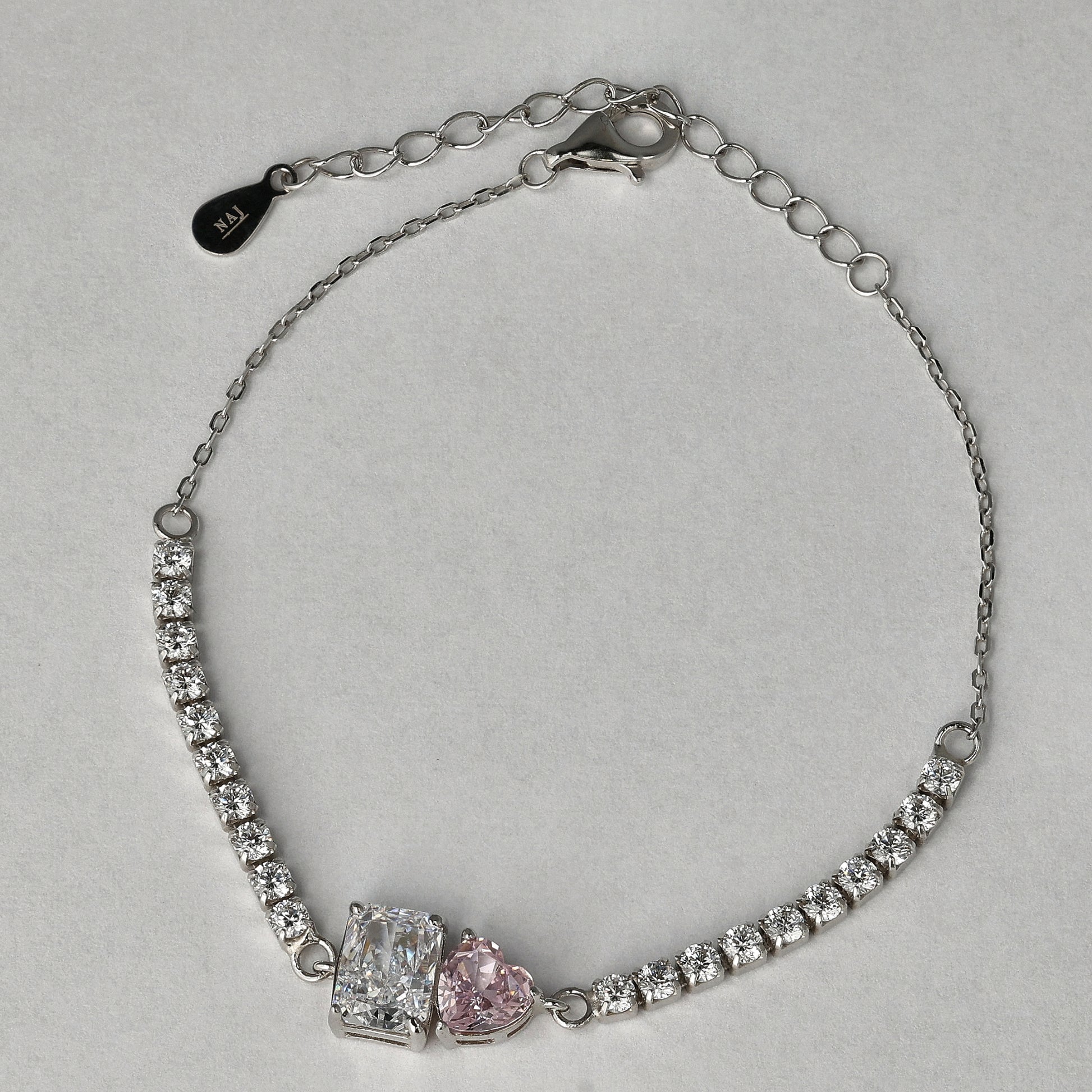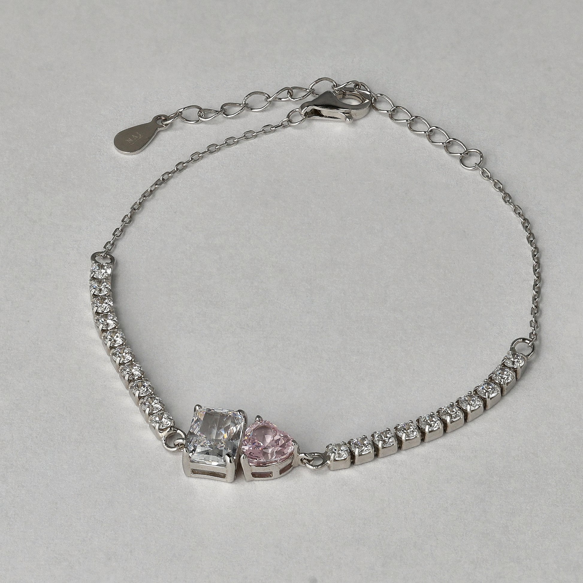 Delicate, radiant, and full of meaning — the “Heart on Light” bracelet mirrors the beauty of its matching necklace, ring and earrings design. Featuring a dazzling white pear-shaped stone and a romantic pink heart, both cut in radiant brilliance, this bracelet is crafted from real 925 sterling silver and adorned with premium 8A-grade zircon stones for exceptional sparkle.