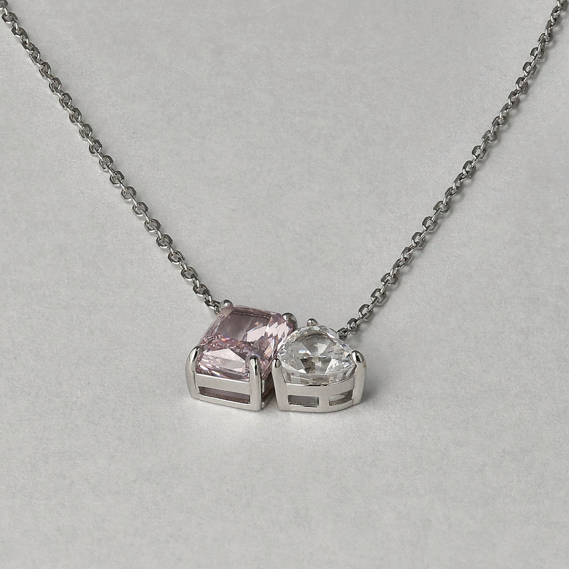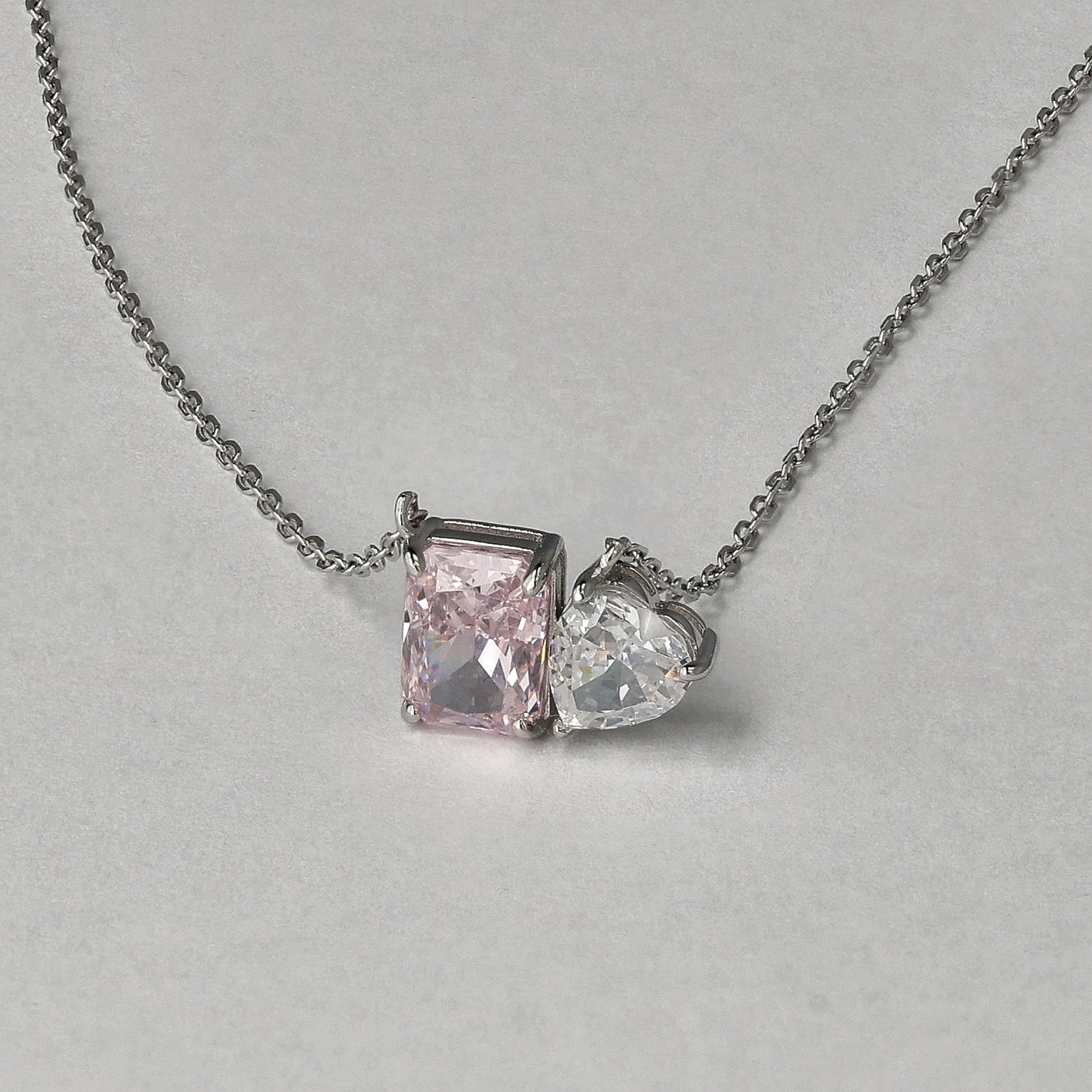A love that glows, a light that never fades. The Heart on Light Necklace pairs a luminous blush-pink zircon in a sleek rectangular cut with a flawless heart-shaped clear zircon — each masterfully cut to 8A-grade brilliance. Together, matching bracelet, ring and earrings design, they capture the balance of emotion and clarity, of warmth and radiance. Set in genuine 925 sterling silver, this design rests close to your heart as a gentle reminder: when love meets light, both shine brighter.