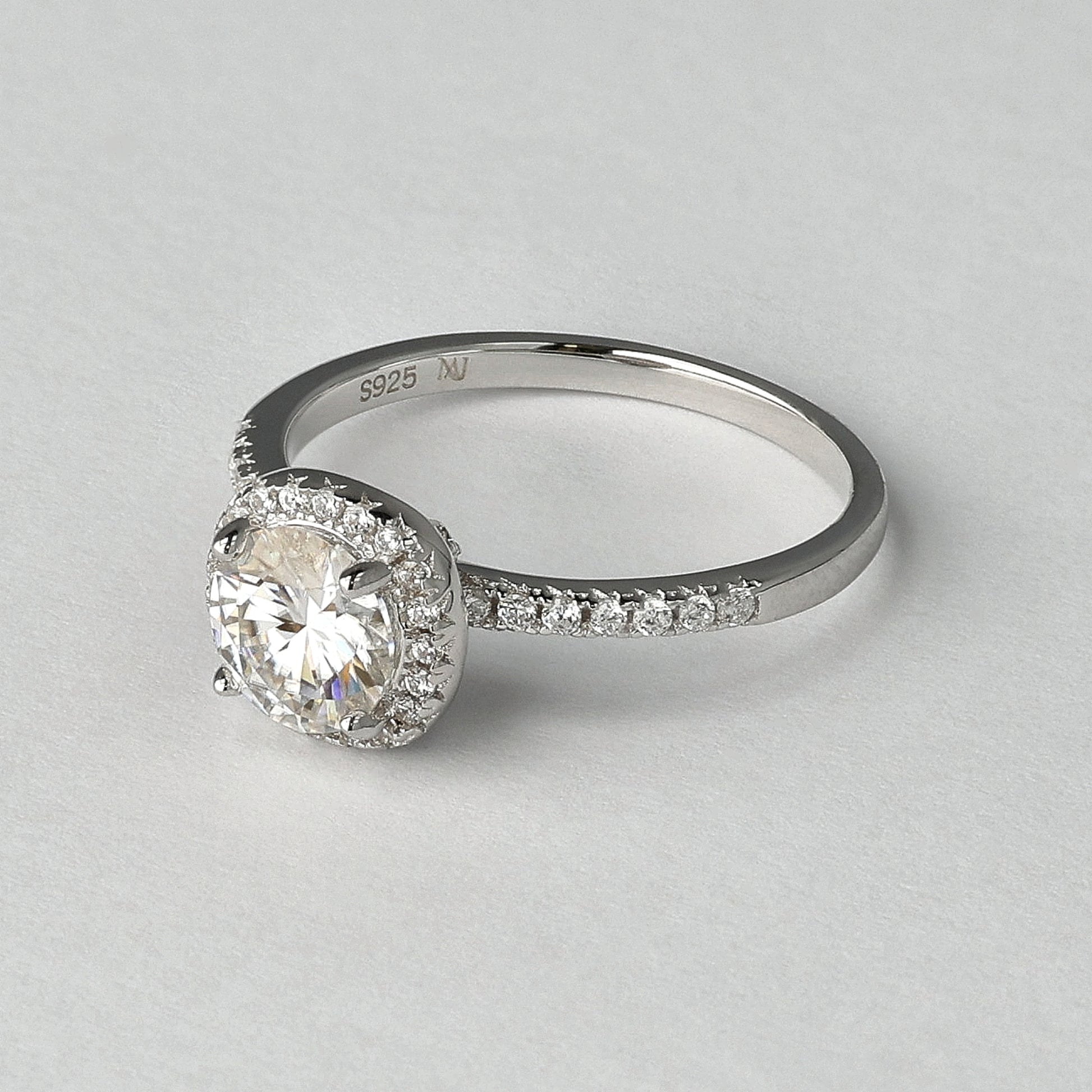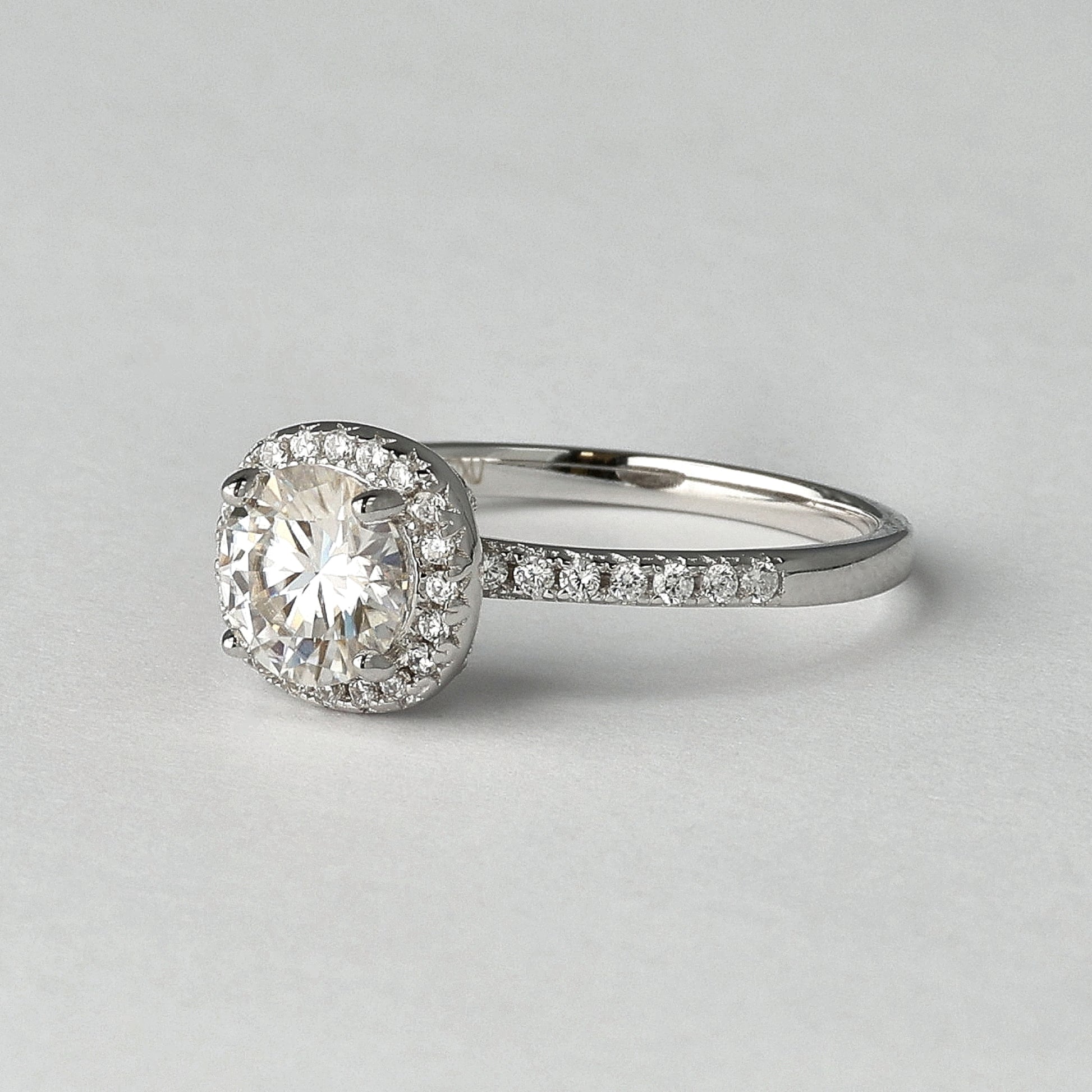 Balance begins where everything feels steady. The Inner Balance Moissanite Ring features a 1.0 carat round-cut D-color moissanite, set at the center and framed by a fine halo that enhances its form without overpowering it. The proportions are calm and considered, allowing the stone to stand clearly while remaining easy to wear. Crafted in 925 sterling silver, rhodium plated, and set with a GRA-certified moissanite, this ring is designed to feel natural on the hand. Its light is clean and even, following movement rather than competing with it. A ring made for everyday wear and for moments when balance matters more than display.