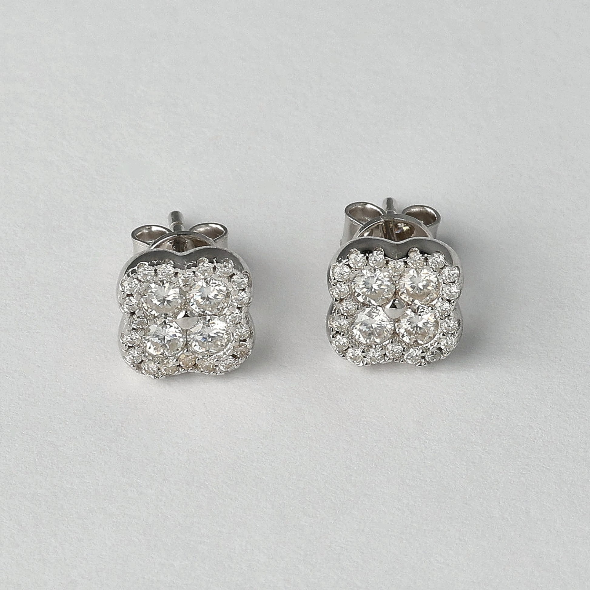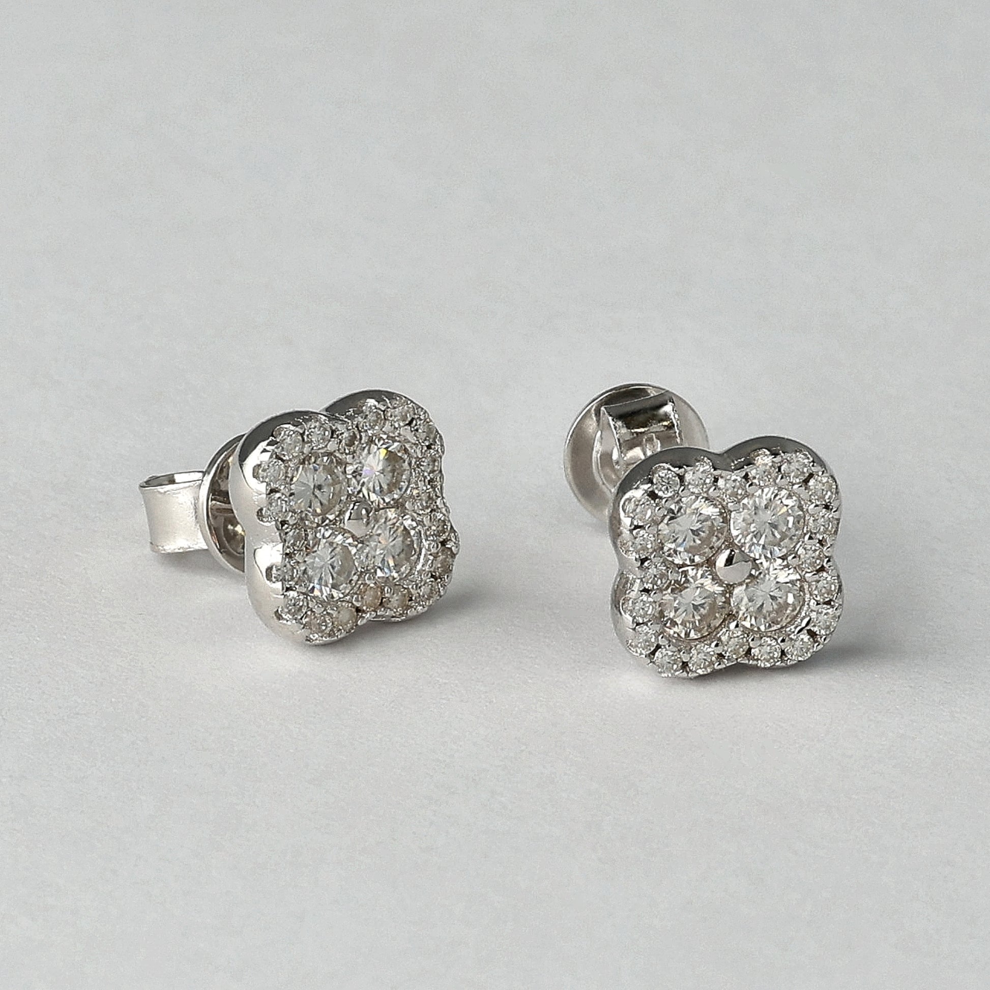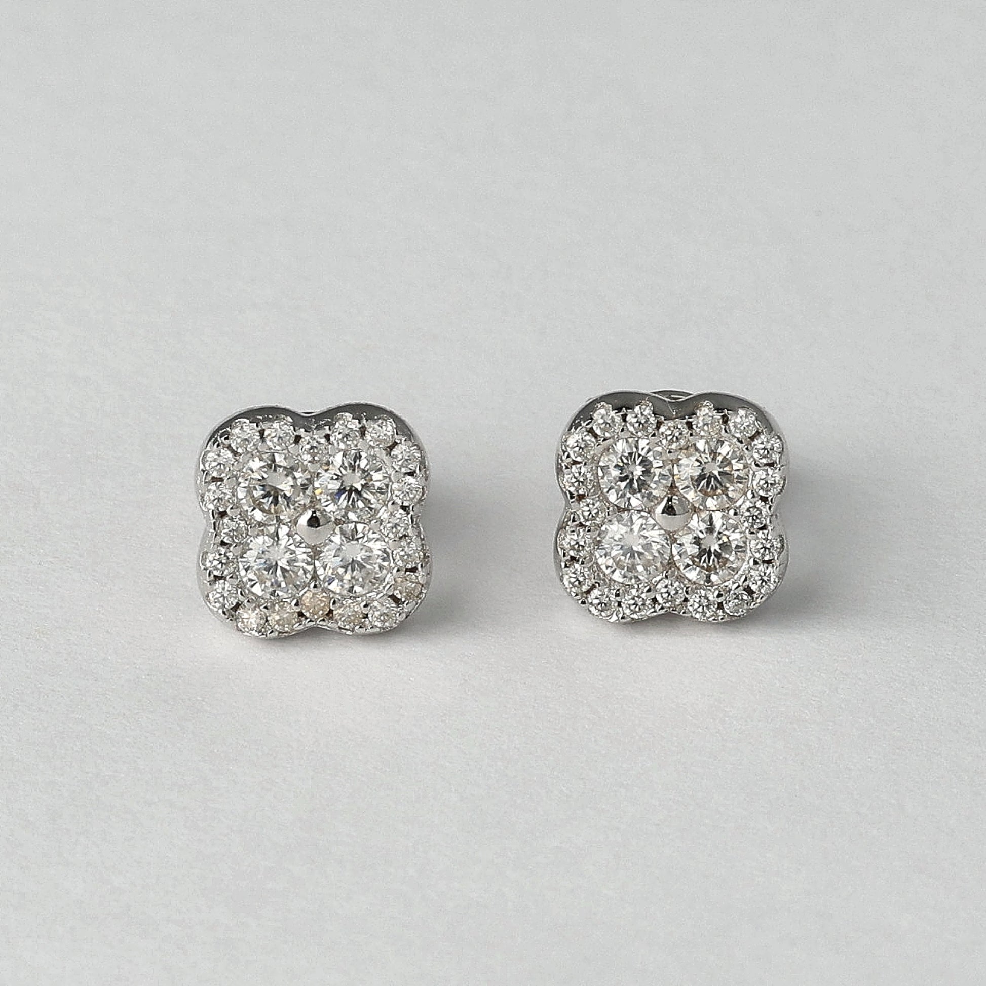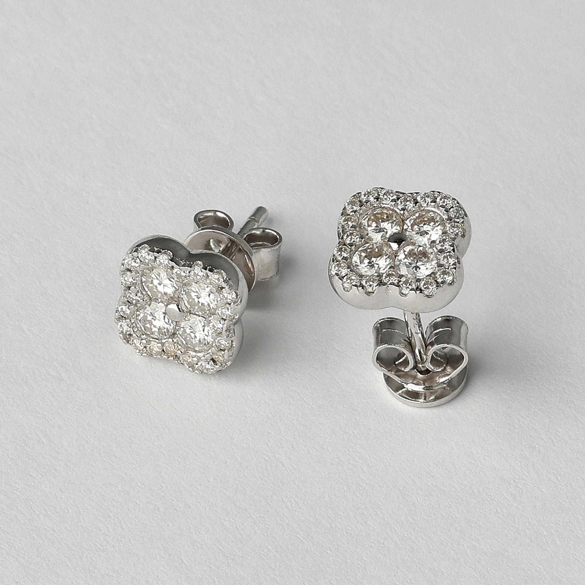 The Lucky Charm Moissanite Earrings feature a refined four-petal cluster silhouette set with brilliant D-color moissanite. The surface is delicate, yet the light performance is confident and precise. At 8 mm, the shape sits perfectly on the ear — balanced, clean, intentional. Designed to reflect light with every movement, without overpowering your look. Crafted in 925 sterling silver, rhodium plated, these stud earrings are lightweight, comfortable, and made for daily wear. It is not about superstition. It is about belief.