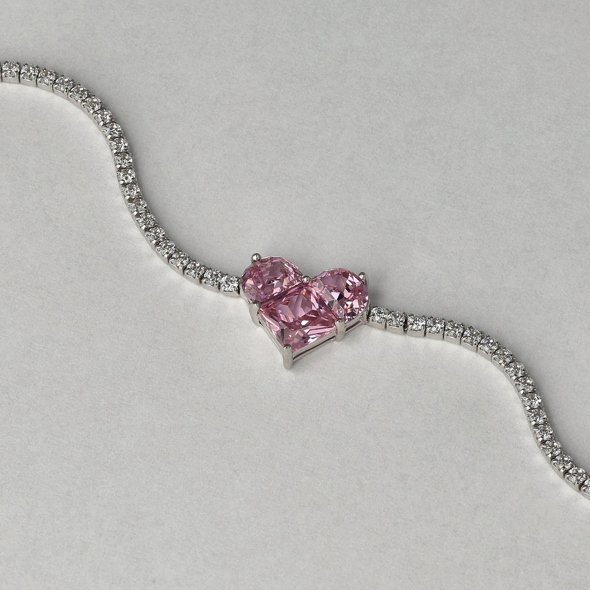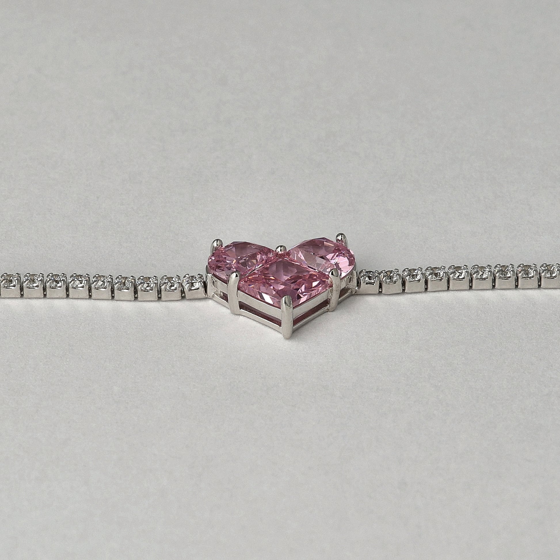 Soft as a whisper, the “Rosé Embrace” Bracelet captures the warmth of affection with its luminous pink heart-shaped zircon at the center. Framed by a graceful line of brilliant stones and crafted from genuine 925 sterling silver, it’s a piece that speaks in the language of love – timeless, gentle, unforgettable.